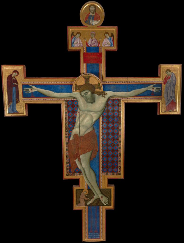Nel Duecento in Umbria matura il distacco dell’arte pittorica dall’universo figurativo bizantino. Incomincerà quella rivoluzione che nella scultura in quel momento storico ci mostra artefici come Nicola Pisano che, nella drammaticità e movimento delle sue figure, restituisce all’arte una rinnovata vitalità. Il percorso della pittura è segnato dalla nuova umanità che vediamo nel Cristo sulla Croce e nell’affettuosità del piccolo Gesù verso Maria, mentre i loro corpi acquisiscono lentamente volume e iniziano a muoversi nello spazio.