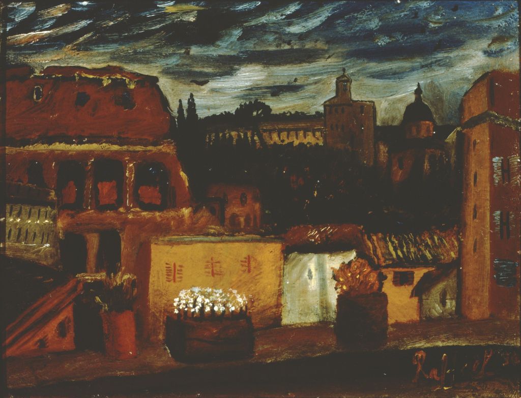 In origine l’incontro fra i giovani Gino Bonichi (Scipione) e Mario Mafai, cui presto si avvicina la lituana Antonietta Raphaël, dà l’avvio a una pittura visionaria e onirica, animata da colori accesi e drammatiche lumeggiature, nutrita dell’ammirazione per Goya, El Greco, Bosch, ma anche per i moderni Kokoschka, Chagall, Derain, Dufyn e il Doganiere Rousseau. Roberto Longhi, recensendo la mostra del gruppo su «L’Italia letteraria» nell’aprile del 1929, individua chiaramente nel sodalizio di via Cavour le derivazioni espressioniste francesi e parla di «misture esplosive», di «virulenza bacillare» e di «sovreccitata temperatura».