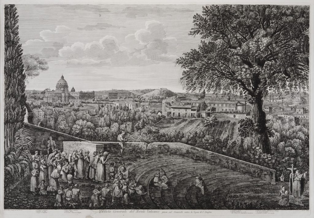 Nella penultima sezione ci sono le incisioni di Giuseppe Vasi, Luigi Rossini e Joseph Anton Koch, che tra il XVIII e il XIX secolo, portarono questa tecnica a livelli eccelsi, trasformando vedute e paesaggi in opere d’arte “senza tempo”. Ad affiancare le incisioni dedicate al paesaggio del Gianicolo, le litografie di Eugenio Landesio e Charlotte Bonaparte, che arricchiscono il racconto visivo della città.