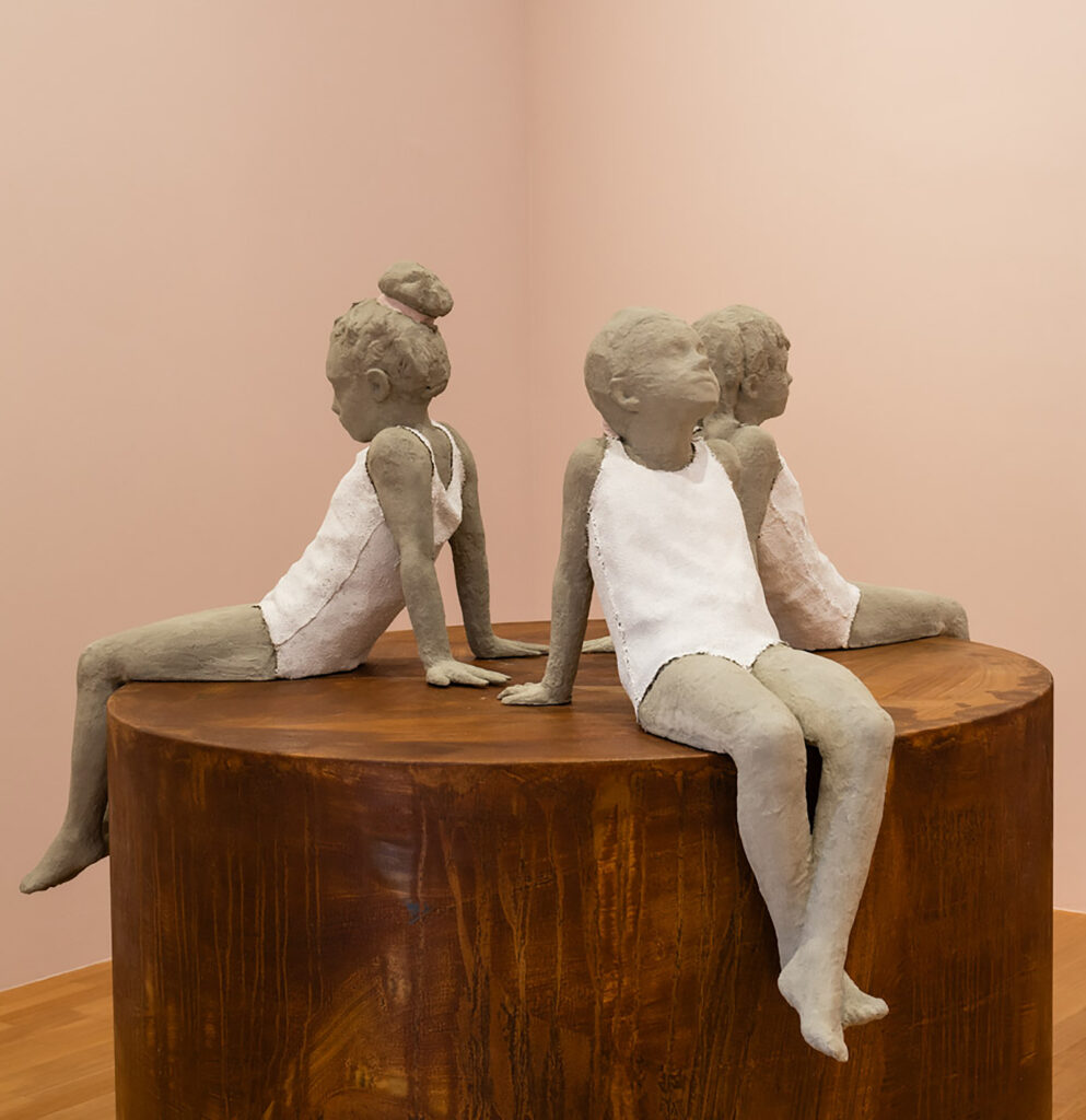 Altro tema caro all’artista è il cambiamento climatico, protagonista nei suoi ultimi lavori e rappresentato in mostra da “Nel silenzio” che vede tre bambine risposare sulla terra arsa dal sole; o la già citata “Don’t let me be wrong”, scultura monumentale nella quale assistere alla proiezione dell’omonimo cortometraggio realizzato con circa ottocento disegni in sequenza e accompagnato da una colonna sonora originale firmata da Daddy G (fondatore della band di culto Massive Attack) insieme al suo storico produttore Stew Jackson.