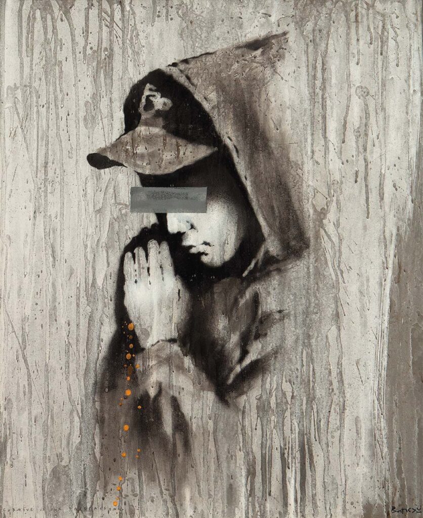 BANKSY, Forgive us our trespassing, vernice spray su compensato, 2012