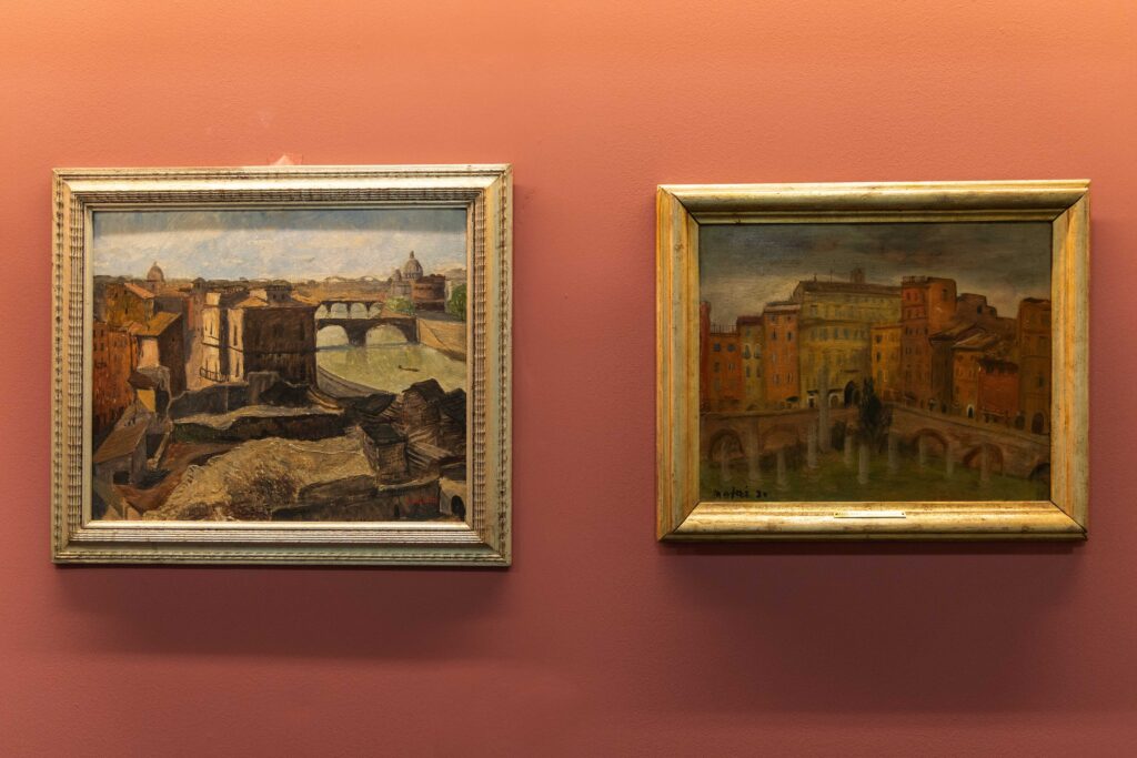 Chiude il percorso uno straordinario gruppo di dipinti di artisti contemporanei  Mario Mafai, Eva Quagliotto, Tina Tommasini – che, similmente a Maria Barosso, seppero restituire le tensioni di una città in bilico tra passato e modernità, rappresentando i profondi mutamenti urbanistici che in pochi anni trasformarono in modo irreversibile la secolare immagine di Roma. Queste opere testimoniano la varietà degli sguardi e la ricchezza delle interpretazioni, offrendo al pubblico un’occasione di riflessione sulla trasformazione storica e culturale della Capitale e delle sue conseguenze.