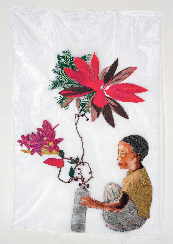 L’artista vive e lavora tra il Portogallo, il Brasile e l’Angola, muovendosi tra una diversità di territori, esperienze e culture che si riflette nelle sue opere, in particolare nel modo in cui ritrae le figure femminili: presenze fragili, incomplete e integrate in pattern geometrici che richiamano produzione in serie, mercati globali ed eredità coloniali ancora in atto.
