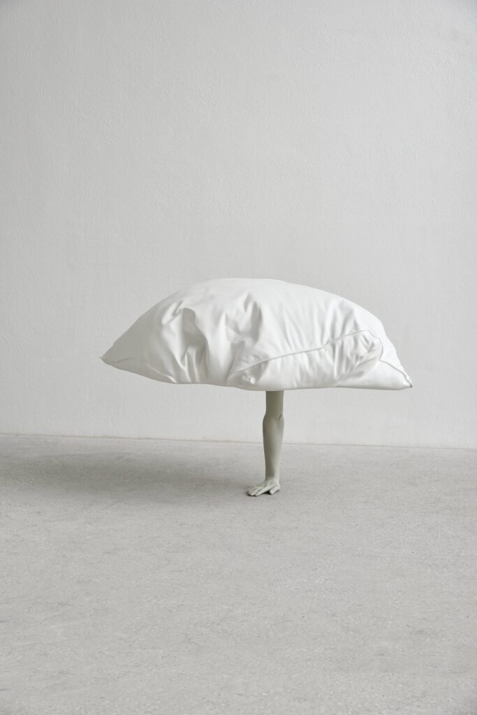 Parallelamente, Wurm antropomorfizza oggetti comuni in modi inattesi, come nel caso delle opere Dreamers, in cui cuscini sovradimensionati sostenuti da arti umani (gambe, braccia, piedi) in posizioni spesso goffe o precarie, si fanno metafora del mondo onirico, esplorando la tensione tra il corpo fisico e la dimensione psicologica dell’inconscio.