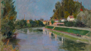 Paesaggi di un tempo che si legano all’eternità e nelle trasparenze delle tinte che compongono sulle tele superfici d’acqua ed edifici, mostrano lo